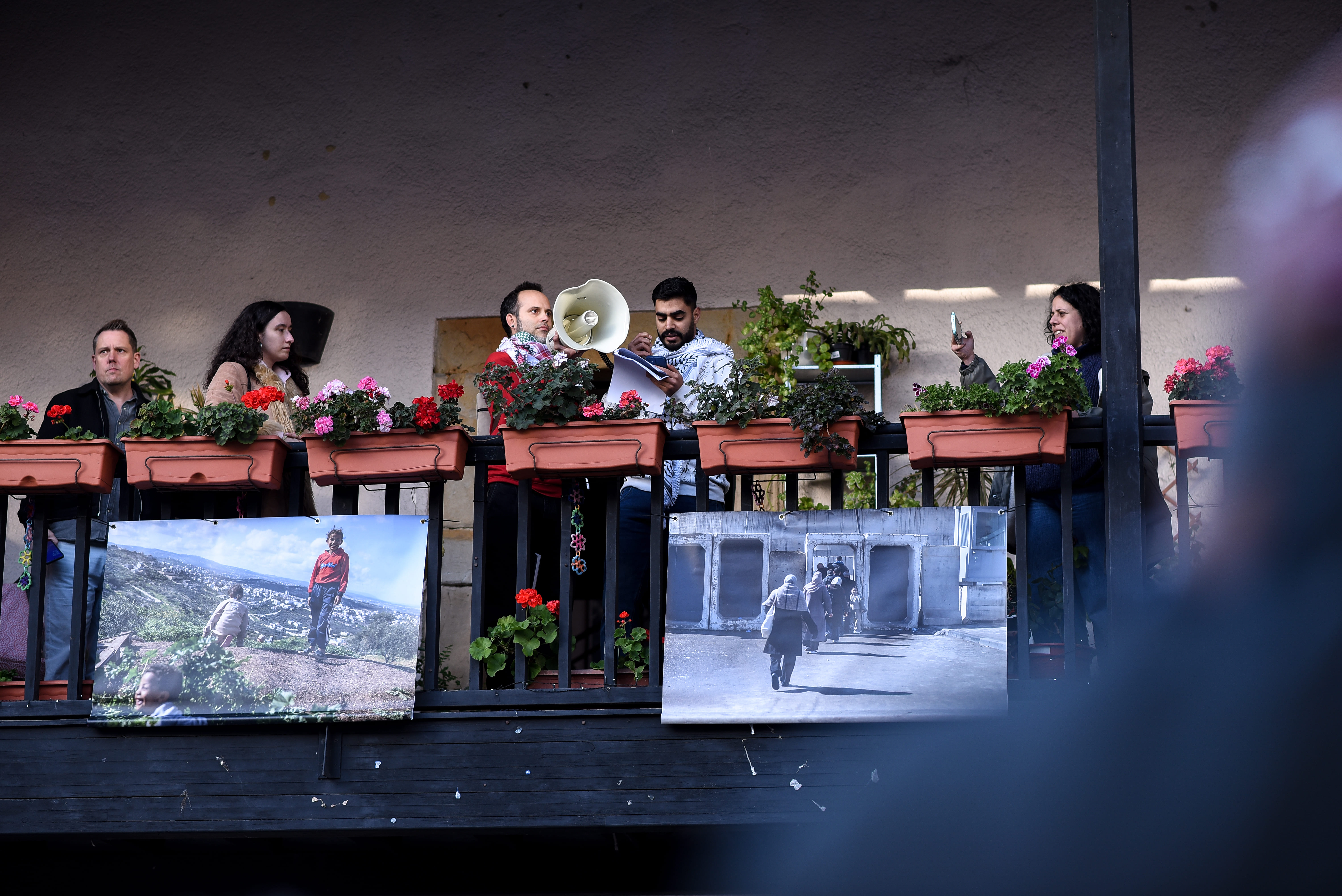 La actividad constó de un recorrido poético en el que participó un nutrido grupo de personas; las vecinas del barrrio alto xixonés desplegaban dese sus ventanas y balcones las fotografías y personas vinculadas al movimiento literario y de solidaridad con la causa palestina recitaron poemas para acompañar el despliegue, el paseo terminó en La Casa del Chino con un video de Morales explicando el contexto de las fotografías y se entregó a las personas asistentes el comic “Palestina. Un vistazo al pasado, una mirada al presente” de Bernardo Vergara actualizado recientemente.
